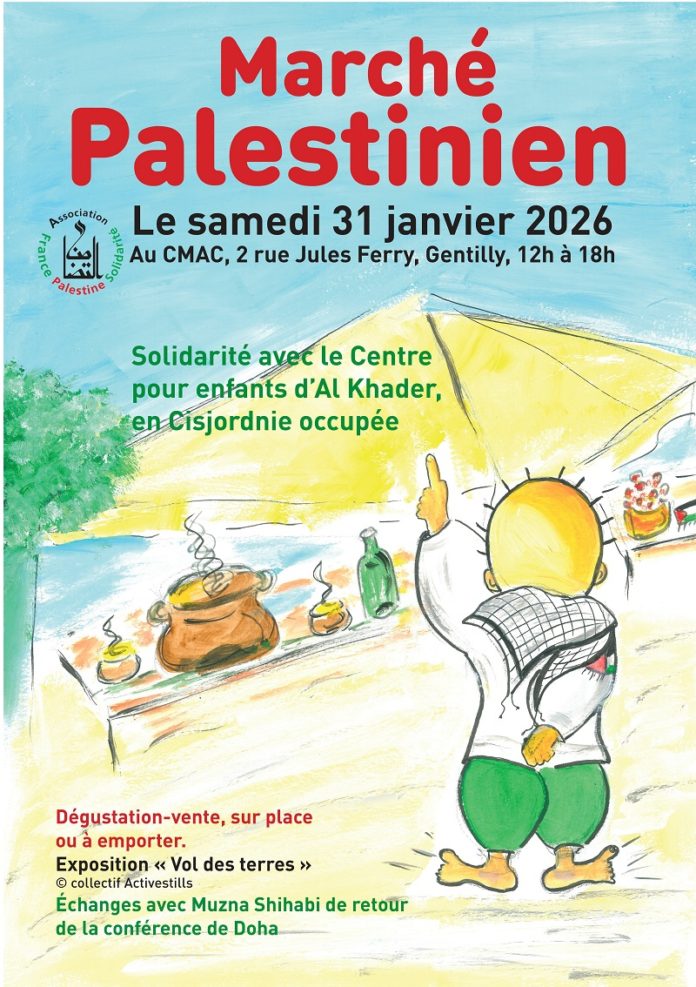 L’AFPS Gentilly organise le 31 janvier un marché palestinien au CMAC , 2 rue Jules Ferry, de 12h à 18h